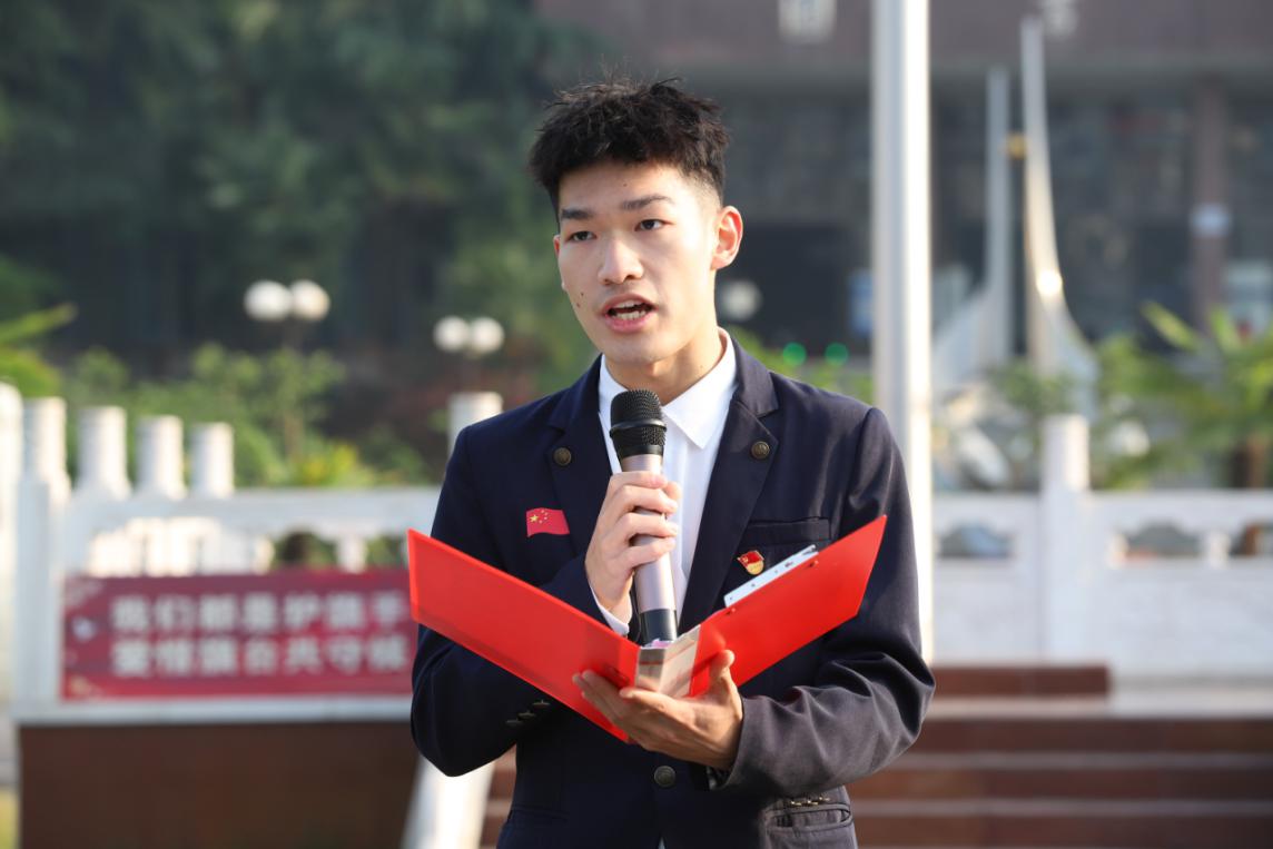 学生代表1901班汪子恒同学以“红色的五月、奋斗的青春”为主题发表国旗下的演讲,他带领大家回顾了中国共产主义青年团在党的领导下始终坚定不移跟党走的光辉历程,号召同学们要坚定信念,志存高远;要勤于学习,知行合一;要弘扬正气,勇担使命。
