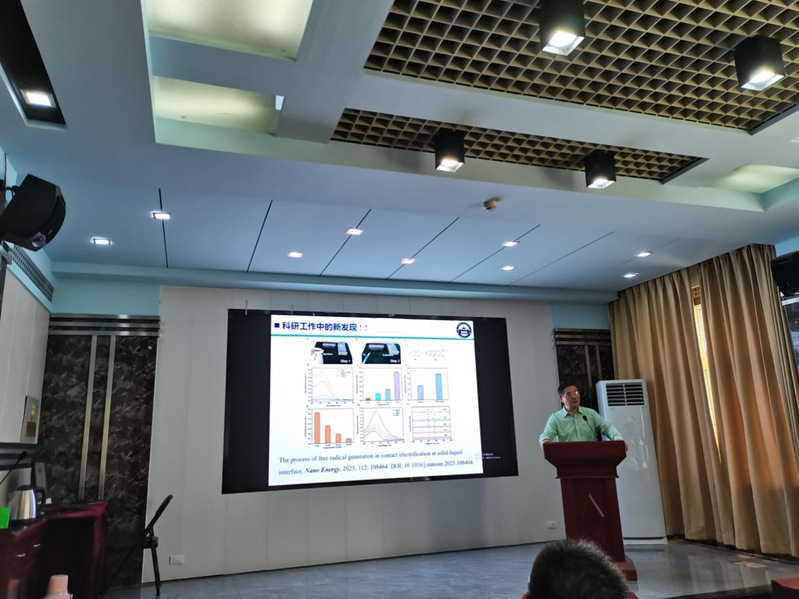 讲座中,刘教授介绍了功能纳米材料的广泛用途及其生态效应,基于化学热力学的碳点对蛋白纤维化调控作用及其机制,包括HI纤维化及纤维体诱导机制、不同氧化程度碳点的合成及其抑制机制、不同含氧量碳点的抑制作用。接着,刘教授介绍了其团队近期主要的研究工作,包括诊疗一体化、协同治疗、量子点、近红外二区窗口(NIR II),拟解决的关键科学问题包括NIR II量子点性能调控、高效、靶向性及特异性和递送效率及精准控释。最后,刘教授针对创新性研究发表了自己的见解,即发现新现象,发掘新问题;提出新概念,建立新模型;阐明新规律,深化新认识;开发新应用,开拓新领域。