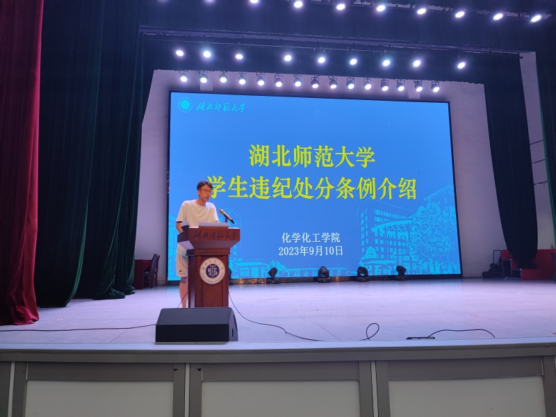 随后,辅导员李海泉对湖北师范大学学生违纪处分条例介绍,李老师从违纪处分种类与期限、学生纪律违纪处分办法和考试违纪处分办法三个方面详细介绍了学校的违纪处分条例,详细列举了学生学习生活负面清单,通过大量真实的案例指出了遵守法律法规、牢记校纪校规的重要性和必要性,用严肃又不失活泼的方式向同学们重点介绍了“可做”和“不可做”事情。