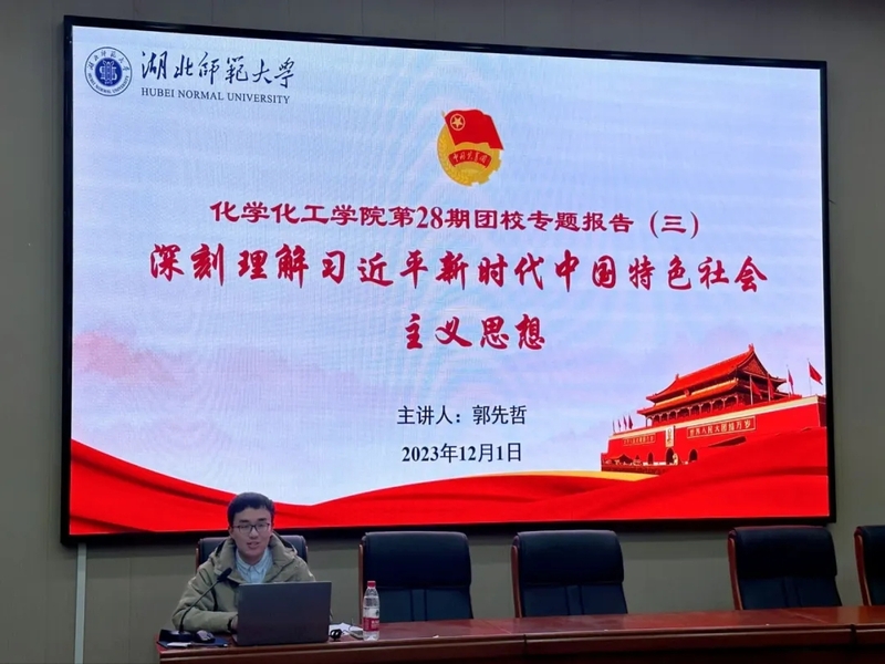 12月1日晚,我院第二十八期团校第三讲《深刻理解习近平新时代中国特色社会主义思想》在设计大楼2J01教室开讲,本次团课由辅导员郭先哲主讲。