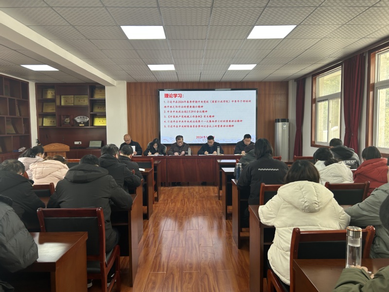 学院坚持“第一议题”制度,持续加强习近平新时代中国特色社会主义思想和习近平总书记重要讲话精神学习。会议首先由学院领导班子成员分别领学习近平在2024年春季学期中央党校(国家行政学院)中青年干部培训班开班之际作出的重要指示精神、中共中央政治局2月29日会议精神、《中国共产党巡视工作条例》有关精神、习近平在二十届中共中央政治局第十一次集体学习时的重要讲话精神、习近平在中央财经委员会第四次会议上的重要讲话精神等内容。罗鸿飞要求全体教职工要不断加强政治理论学习,准确把握新时代新征程党和国家的中心任务、对高等教育工作提出的新要求,用党的创新理论指导推动学院各项工作高质量发展。
