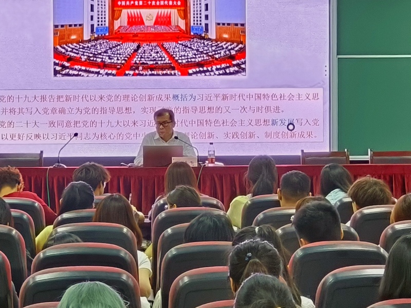 4月24日晚,在学院分党校第68期入党积极分子培训班开班式结束后,院党委书记罗鸿飞以《深刻理解习近平新时代中国特色社会主义思想》为题开启了党课第一讲。他从习近平新时代中国特色社会主义思想的形成发展条件、科学体系和价值意蕴三方面进行了全面阐释和系统讲解。