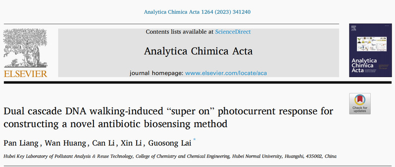 [成果9] 双重级联DNA步行引发“super on”光电流响应用于抗生素生物传感