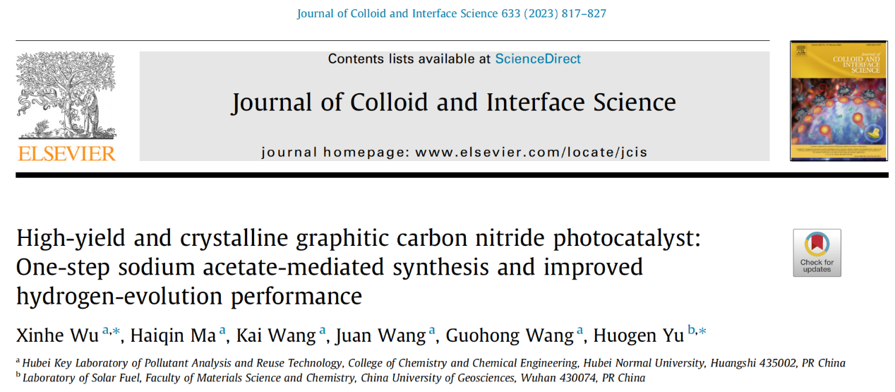 该研究设计了一种醋酸钠调控策略成功一步合成晶化氮化碳光催化剂,其在可见光下呈现出优越的光催化分解水制氢活性。研究表明,引入的醋酸钠不仅可以通过氢键与双氰胺结合,防止双氰胺及后续中间体的大量升华流失;同时,还可以加速脱氮缩聚反应、促进3-s-三嗪环基本单元的有序排列,一步实现高活性晶化氮化碳光催化剂的高产率合成。该研究对晶化氮化碳光催化剂的设计开发具有一定的指导意义。该成果于202212月发表于中科院SCI大类一区期刊Journal of Colloid and Interface ScienceIF9.9,吴新鹤副教授为论文第一作者及通讯作者,中国地质大学(武汉)余火根教授为共同通讯作者,湖北师范大学为论文第一通讯单位。