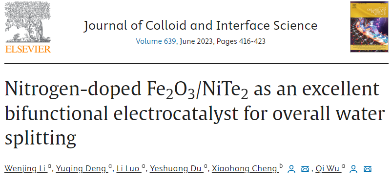 [成果17] 氮掺杂 Fe2O3/NiTe2作为一种优异的全水分解双功能电催化剂