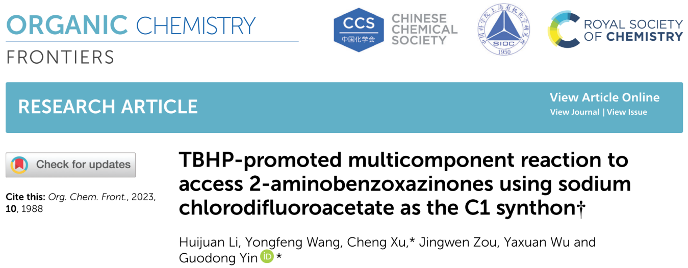 [成果6] 氯二氟乙酸钠作为C1合成子:TBHP 促进的多组分反应合成2-氨基苯并噁嗪酮