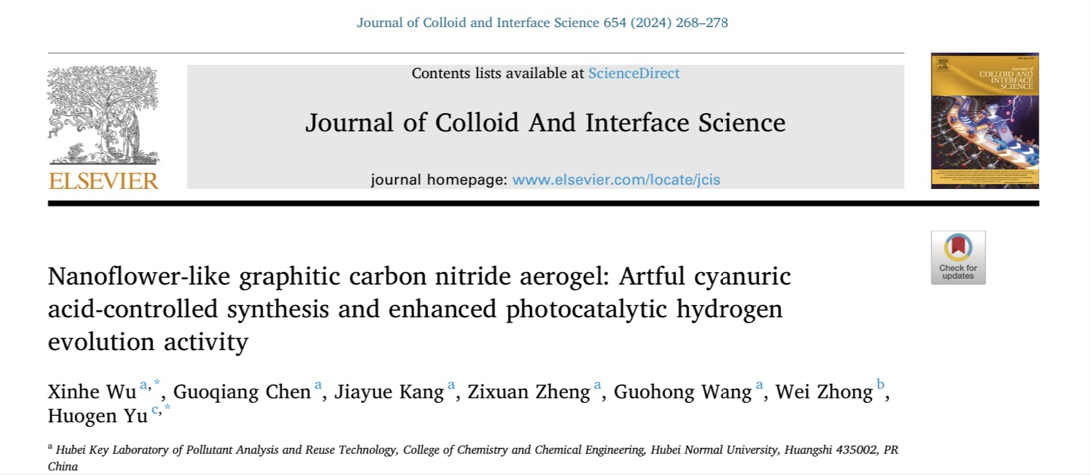 该成果于2023年6月发表于中科院SCI大类一区期刊Journal of Colloid and Interface Science(IF:9.9),2020级硕士研究生李文静为论文第一作者,吴奇副教授、湖北文理学院程晓红教授为共同通讯作者,湖北师范大学为论文第一通讯单位。