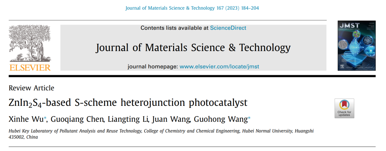该论文综述了目前最为流行的ZnIn2S4基S型异质结光催化剂,包括其研究背景、科学机理、设计原理、制备策略和表征方法。此外,还通过分类举例阐述了ZnIn2S4基S型异质结的光催化应用,包括分解水制氢、CO2还原、环境净化等。最后指出ZnIn2S4基S型异质结在合成、改性和应用中存在的一些不足,并对其未来发展提出展望。该成果于2023年6月发表于中科院SCI大类一区期刊Journal of Materials Science & Technology(IF:10.9),吴新鹤副教授为论文第一作者及通讯作者,王国宏教授为共同通讯作者,湖北师范大学为论文唯一通讯单位。