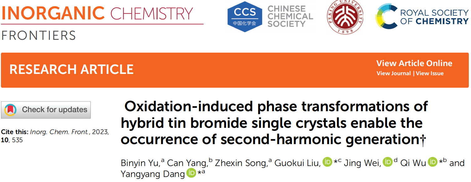 [成果26] 氧化诱导的杂化溴化锡单晶相变致使二次谐波现象的产生