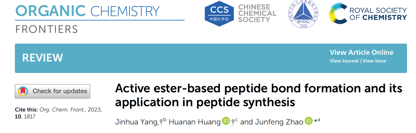 活化酯在多肽合成上扮演着重要角色。该论文根据活化酯的制备方式不同,将活化酯分为以下三大类:瞬时型活化酯、预先制备性型活化酯和活化试剂直接缩合型活性酯。该论文对不同类型活化酯策略的起源、发展、利弊进行了概述和分析,提出新型的多肽缩合设计理念,整合缩合试剂和传统活化酯优点解决传统偶联剂介导的多肽合成困境,为缩合试剂的设计开辟了新的方向。该成果于2023年1月发表于中科院SCI大类一区期刊Organic Chemistry Frontiers(IF:5.4),杨进华博士、九江学院黄华南教授为论文共同第一作者,广州医科大学赵军锋教授为通讯作者,广州医科大学、湖北师范大学分别为论文第一、第二通讯单位。