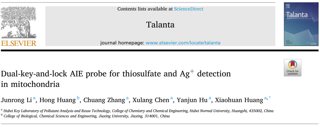 [成果4] 用于线粒体中硫代硫酸盐和银离子检测的“双钥锁”AIE探针