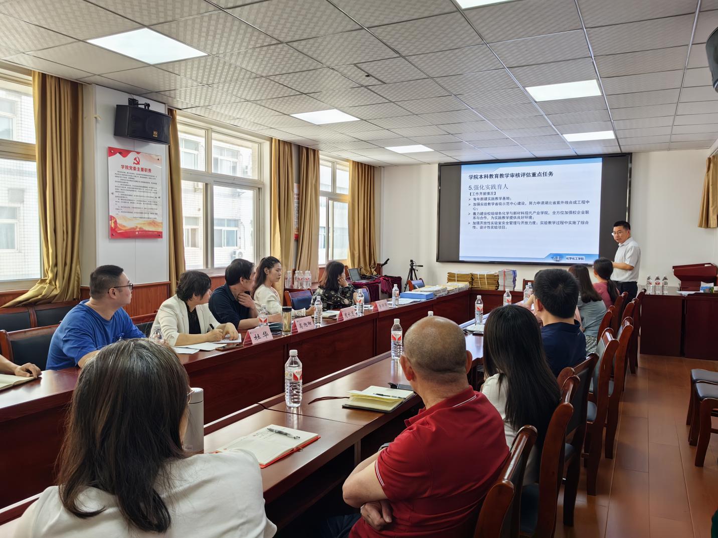院长殷国栋从严格教学质量监控、多措并举提高人才培养质量、毕业论文工作、化学国家一流本科专业建设、绿色化工与新材料现代产业学院建设、“优师计划”班级建设、审核评估评建整改、学业预警与帮扶等教学日常运行进行了汇报。
