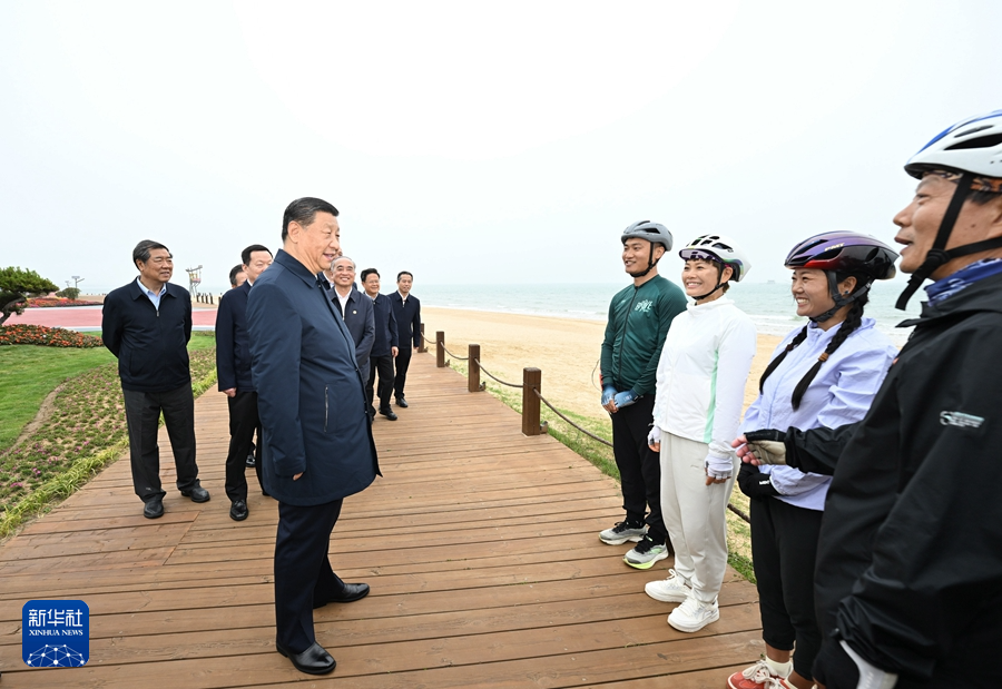 随后,习近平考察了日照市阳光海岸绿道。近年来,日照市对沿海裸露场地及岸线破损处进行生态修复,建成约28公里的阳光海岸绿道,为市民和游客提供了运动休闲好去处。习近平听取绿道整体建设情况介绍,察看修复治理后的海岸线生态环境,了解当地升级文旅产业、提升人民生活品质的做法和成效,并不时同市民和游客亲切交流。他指出,建设绿道应市民所需,是得民心之事。推进中国式现代化,就是要让人民群众的生活越来越好。生态环境好,老百姓就多了一份实实在在的幸福感。大家要一起动手,共同建设和呵护美好家园。