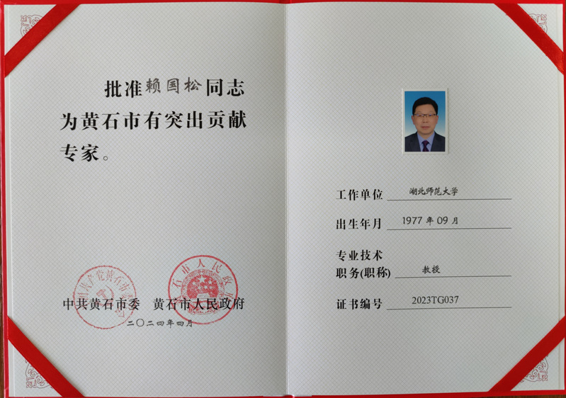 日前,黄石市委办公室、黄石市人民政府办公室发出明电通报(黄办发电〔2024〕5号),公布2022-2023年度黄石市有突出贡献专家评选结果,我院赖国松教授光荣当选。