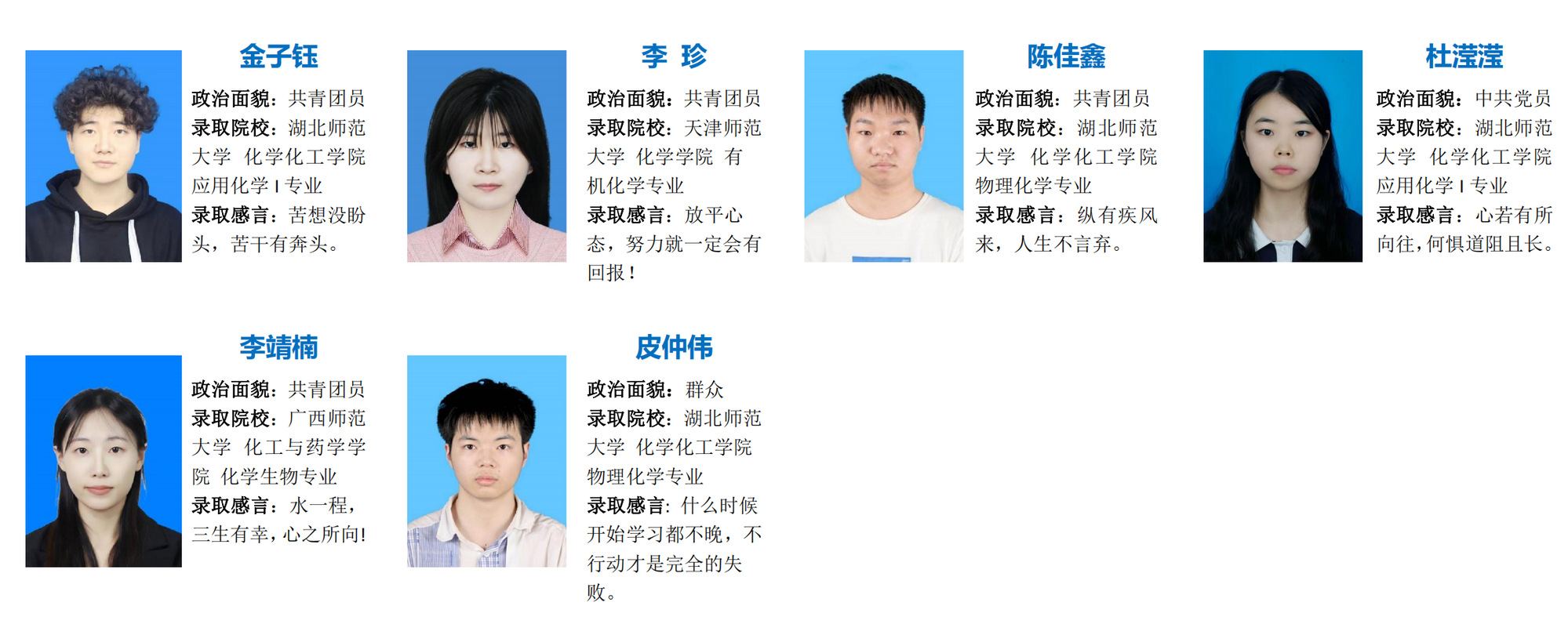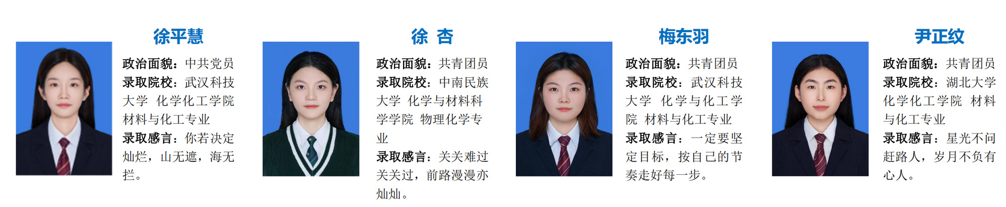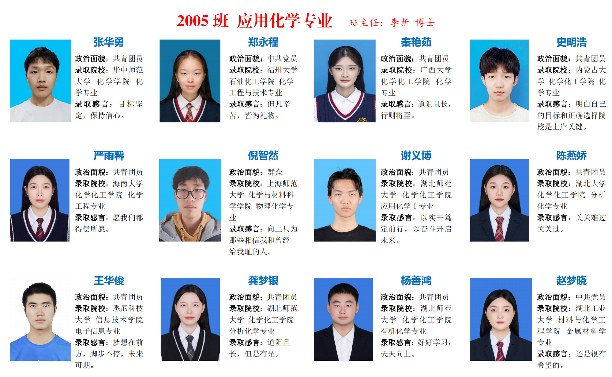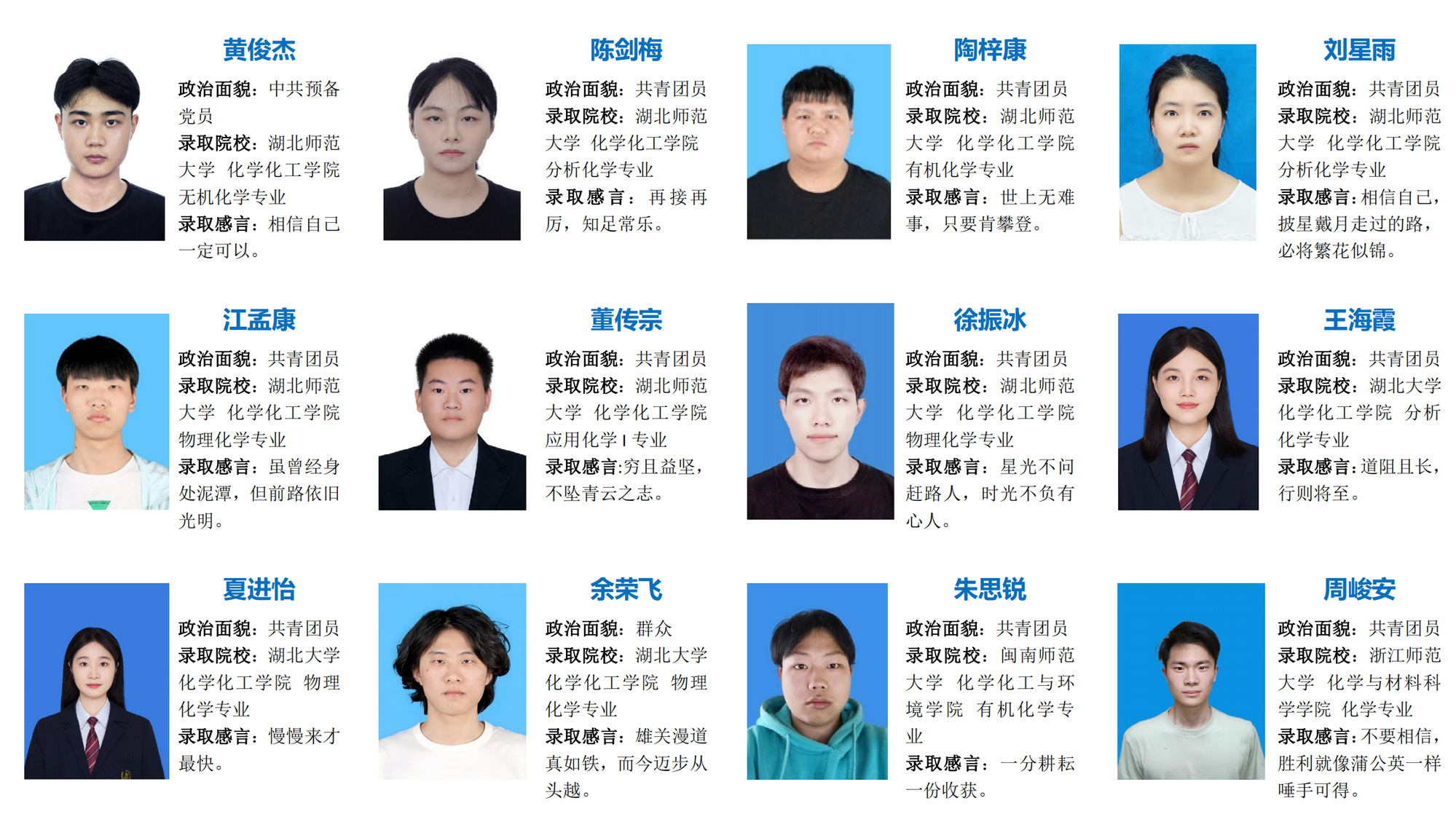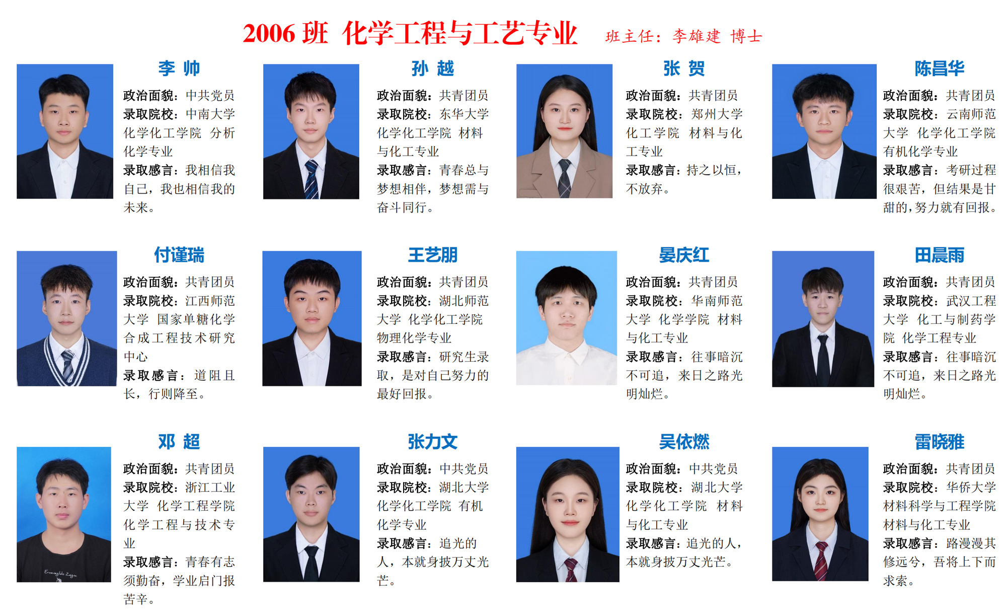 编者按:执笔耕耘梦想,持卷浅吟年华;踏上“研”途,便只顾风雨兼程。这一趟有山重水复,也终见柳暗花明;虽漫长而艰辛,但终有回报之日。我院2024届284名本科毕业生中122人被国内外高校(研究所)录取,升学率达42.96%,创学院考研录取率历史新高。本期推送应用化学、化学工程与工艺专业考研光荣榜,他们从选择考研的那一刻开始,以山河为伴,日月为引,一直以来的努力,迎来了最好的结果。