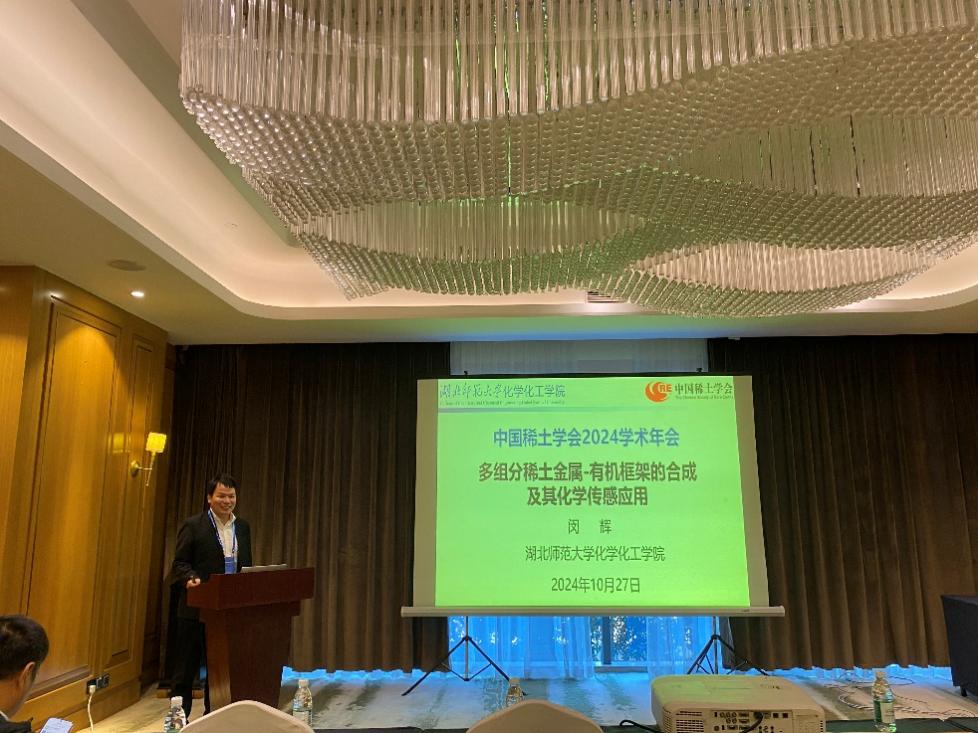 中国稀土学会2024学术年会于10月25-28日在四川省成都市召开。我院无机化学教研室闵辉博士受邀在稀土化学与分子工程分会场做题为《多组分稀土金属-有机框架的合成及其化学传感应用》的口头报告,报告了他在发光稀土配合物的设计、合成及传感应用等方面的研究工作。