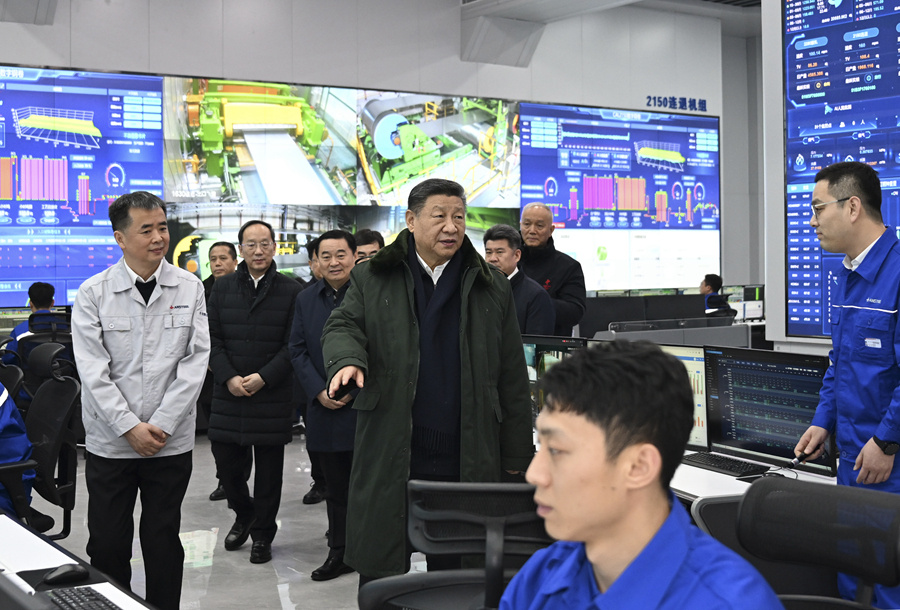 1月22日至24日,中共中央总书记、国家主席、中央军委主席习近平冒着严寒来到辽宁,看望慰问基层干部群众。这是23日下午,习近平在本溪市考察本钢板材冷轧总厂第三冷轧厂车间。新华社记者 翟健岚 摄