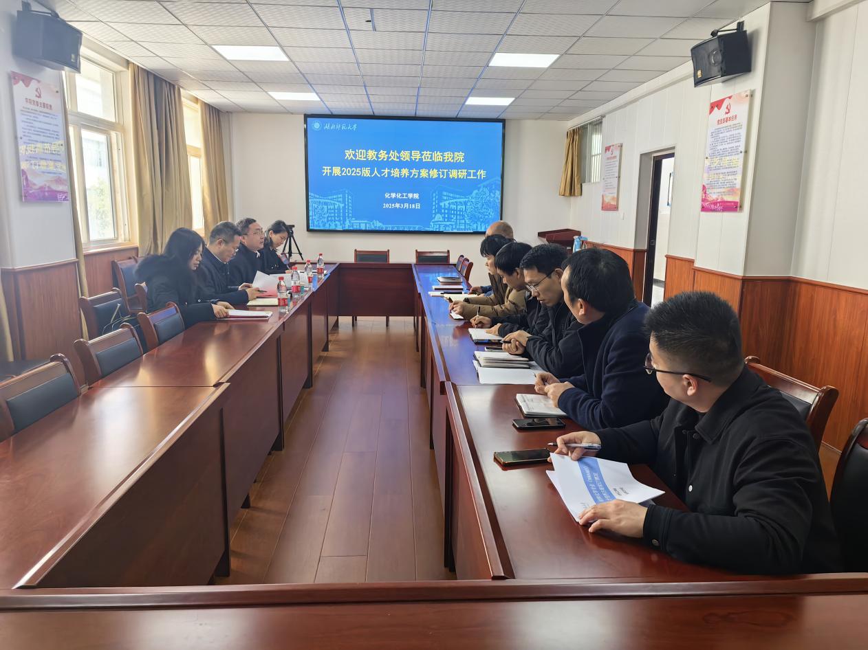 胡艳军处长在听取汇报后,充分肯定了我院在人才培养方案修订工作中取得的阶段性成果,并对后续工作提出了建设性意见和建议。他强调,人才培养方案修订要紧密对接国家战略需求与地方经济社会发展,尤其要契合湖北产业发展对化学化工领域人才的需求,突出专业特色与优势,强化实践教学与创新创业教育,培养学生创新精神与实践能力。同时,要进一步优化课程体系,避免课程内容重复,加强课程之间有机衔接,提升课程整体质量。