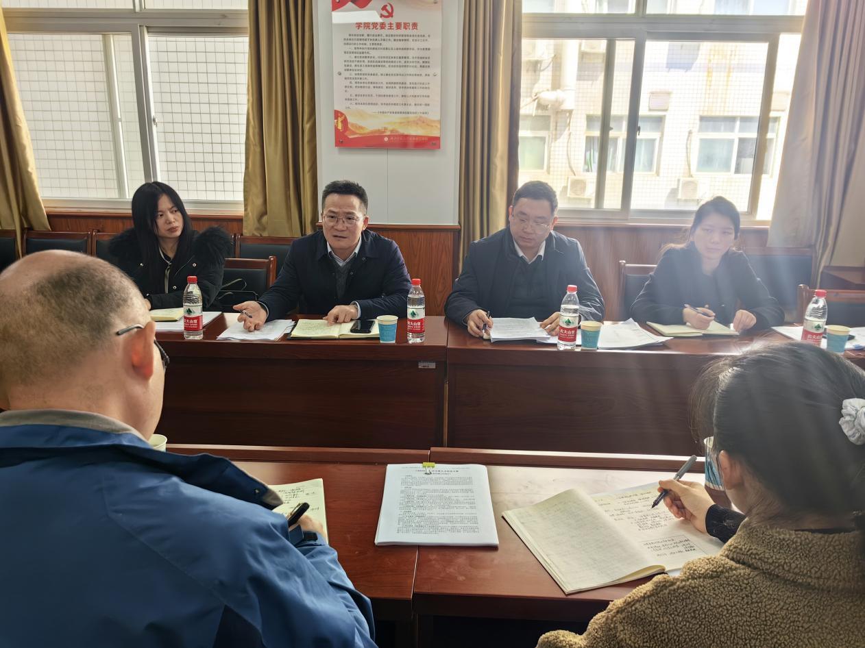3月18日,教务处处长胡艳军一行莅临学院调研指导2025版人才培养方案修订工作,对我院前期开展的研讨、论证、修订工作予以肯定,对下一步工作提出指导意见。教务处副处长副处长袁蓓、科长袁小燕参加调研,副院长周兴旺及各专业负责人、教研室主任和教学办工作人员参加。教务处副处长付光槐主持调研会。