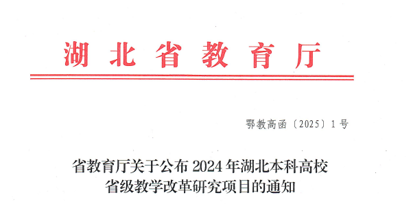 日前,省教育厅分别公布2024年湖北本科高校省级教学改革研究项目立项名单(鄂教高函〔2025〕1号)、2024年度新工科建设项目名单(鄂教高函〔2025〕4号),杨进华副教授申报的《学科交叉背景下有机化学专业研究生创新人才培养模式探索》获批省级教学改革研究项目研究生教育项目立项,我校共获批14项省级教研项目,其中研究生教育项目3项;周耀副教授申报的《数智化赋能新工科背景下化工专业实践教学体系的改革与创新体系建设》获批新工科实践教学建设项目立项,该类别我校共获批2项。
