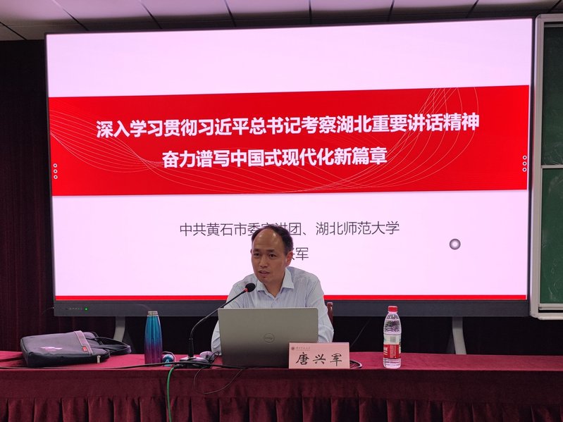 4月24日晚,我院分党校第70期入党积极分子培训班第五讲在信息大楼报告厅开讲,市委宣讲团成员、马克思主义学院院长唐兴军教授以《深入学习贯彻习近平总书记考察湖北重要讲话精神 奋力谱写中国式现代化新篇章》为题为全体学员授课。