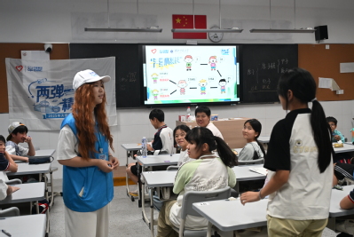 7月12日,宣讲团成员段晨蔚、杨银涛走进浠水县兰溪方铺小学,为一至六年级学生带来一堂生动的思政课科普课。段晨蔚现场以古筝演奏《东方红》引入,随后共同观看卫星发射的珍贵影像详细讲述中国第一颗原子弹的研制历程,从科研团队组建到戈壁滩上的艰苦奋斗,结合“两弹一星”功勋奖章获得者王淦昌的事迹,生动展现了科研工作者和参试部队“干惊天动地事,做隐姓埋名人”的崇高精神。杨银涛从核技术的基础原理讲起,用“太阳为什么能一直发光发热”“原子弹为什么有那么大威力”问题开篇,重点讲解了核技术在生活中的“隐形身影”,并结合孩子们熟悉的场景举例,让抽象的技术变得可感可知。面对“核技术会不会有危险”的疑问,他用“就像用电一样,只要规范使用就很安全”的比喻耐心解答。