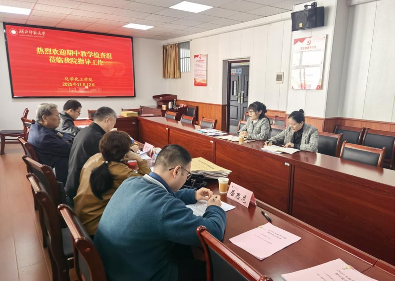 检查组组长王卫东教授强调了期中教学检查的重要性,随后与检查组成员叶良明教授、曹晓琴教授、邓小明老师、居思危老师,结合学院自查材料,对师范专业认证维持、审核评估整改落地、2025年春季学期期末试卷规范性、2025届本科毕业论文质量、学业帮扶精准度、新增教材适用性、教研室活动实效性、语言文字工作落实等方面进行了细致核查。