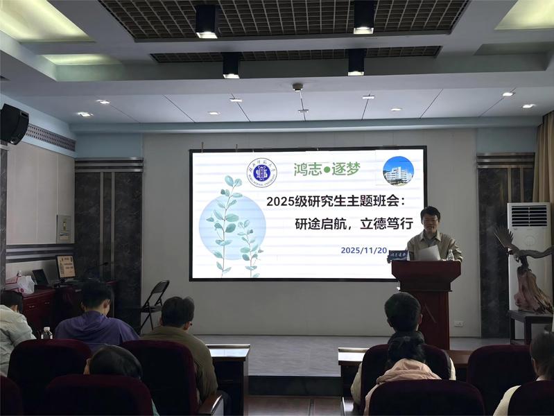 学院11月28日下午正式启动“鸿志逐梦”研究生系列主题班会活动。首场主题班会面向2025级研究生新生,以“研途启航、立德笃行”为主题,引导研究生新生坚定理想信念、筑牢安全意识、明确学业规划,尽快适应科研学习生活。