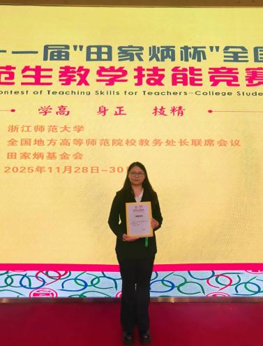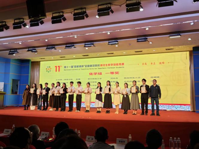 11月28至30日,第十一届“田家炳杯”全国师范院校师范生教学技能竞赛决赛在浙江师范大学举行,我院23级优师班学生吕璇凭借扎实的化学专业功底、精湛的教学设计与课堂展示能力,在全国众多参赛选手中脱颖而出,荣获化学组一等奖,充分彰显了我院优师计划培养质量与师范生核心素养。