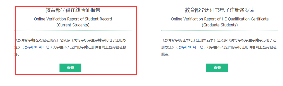 2. 登录后在主页面就可以看到在线验证报告,点击申请《教育部学籍在线验证报告》。退役士兵(往届毕业生)点击申请《教育部学历证书电子注册备案表》。